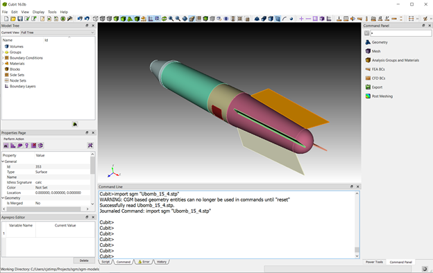 One can read .STEP and .sgm CAD files into Cubit® using the new Scalable Geometric Modeler (SGM). The SGM is a new addition to CUBIT as an alternative to the default ACIS geometric engine. Capabilities within Cubit® for interacting with geometry are limited when a model is imported into SGM. This is the first increment to support basic visualization and we have a roadmap to support other capabilities such as geometry modifications, mesh generation, and mesh-modification working on top of the SGM engine. We do not support mixing ACIS, Facet, and SGM engines.