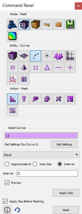 Note: There is not a separate interval action panel for curves. The interval and mesh actions for curves are grouped together in one panel.