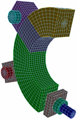 Automatic decomposition is used to decompose the model shown in Figure 1 (left), with the results shown in Figure 1 (right). In this case, automatic decomposition performs all but one of the required cuts.