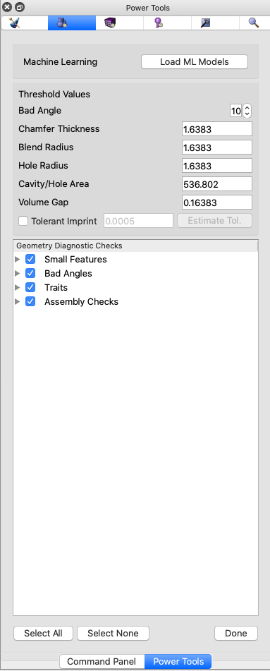The following describe the additional diagnostics available when ML is enabled in the Geometry Power Tools.