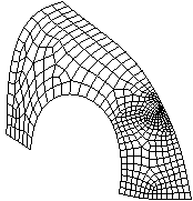 For example, the left image in Figure 2 depicts a plastic strain metric which was generated by PRONTO-3D [Taylor, 89] a transient solid dynamics solver, and recorded into an ExodusII data file. When the file is read back into CUBIT, the paving algorithm is driven by the function values at the original node locations, resulting in an adaptively generated mesh [Attaway, 93]. The right image in Figure 1 depicts the resulting mesh from this plastic strain objective function.