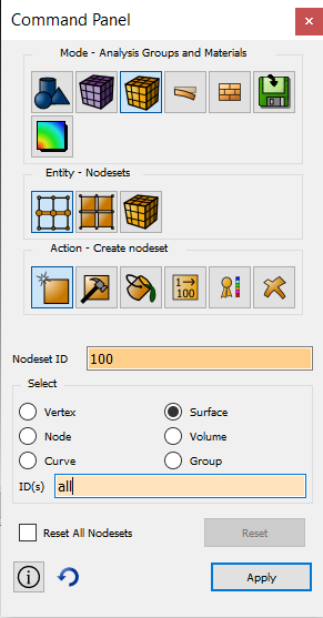 - Select the Surface radio button and type all in the ID(s) field