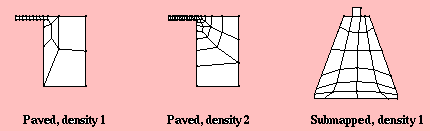 The user may also automatically bias the mesh from small elements near complicated geometry to large elements near expanses of simple geometry. Meshing a curve with scheme featuresize places nodes roughly proportional to the distance from the node to a piece of geometry that is foreign to the curve. Foreign means that the geometric entity doesn't contain the curve, or any of its vertices (i.e. the entity's intersection with the curve is empty). It is known that featuresize is a continuous function that varies slowly. Featuresize meshing is very automatic and integrated with interval matching. Featuresize meshing works well with paving, and in some cases with structured surface-meshing schemes (map, submap) as well.