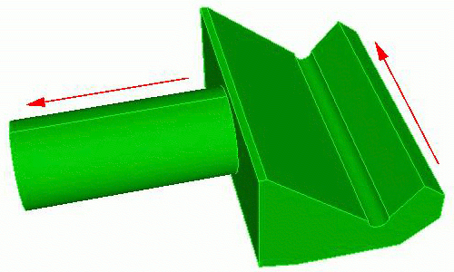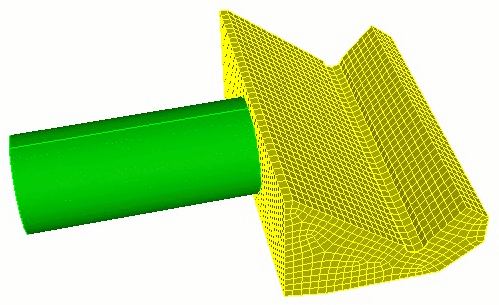 Figure 1 shows the model that will be meshed. The arrows in the figure show the two intersecting sweep directions. Figure 2 shows the model decomposed for grafting.