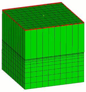Boundary effects to be modeled in the analysis code frequently require a refined mesh near a specific surface. CUBIT provides this capability with the Refine Mesh Boundary command. This command is similar to the Refine Mesh Volume Feature command except that it can insert multiple sheets of hexes near the specified surface.