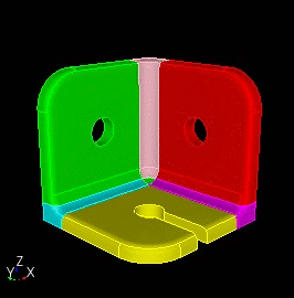 The collapse surface command is most useful in removing blended surfaces (i.e. fillets and chamfers) from a model. For example, Figure 1 below shows a set of highlighted surfaces on a bracket. By collapsing all these surfaces the model shown in Figure 2 is created. Collapsing the surfaces for this model simplifies the model and allows for the creation of a higher quality mesh.