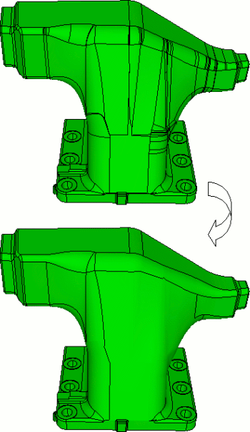 Simplifying topology by compositing individually selected surfaces is often a tedious and time-consuming task. The simplify command addresses the tedium by automatically compositing surfaces and curves based on selected criteria between neighboring entities. Figure 1 shows a typical example of simplify command usage (‘simplify volume 1 angle 15’).