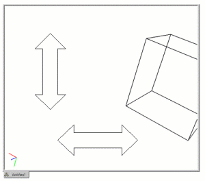 Where the cursor is in the graphics window will dictate how the view will be rotated. If the cursor is outside of an imaginary circle, shown in Figure 2, the view will be rotated in 2d, around an axis normal to the screen. If it is inside the circle, as in Figure 3, the rotations will be in 3d, about the current view spin center. The spin center can be changed to any x-y-z location. The most common way is by zooming to an entity, which changes the spin center to the centroid of that entity. The "view at" command will change the spin center without zooming: