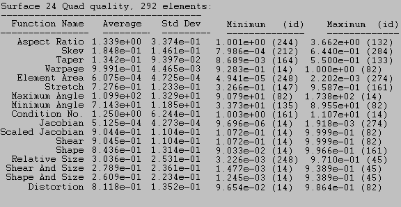 Figure 3. Graphical output of quality metric for command "Quality Surface 24 Skew Draw Mesh"