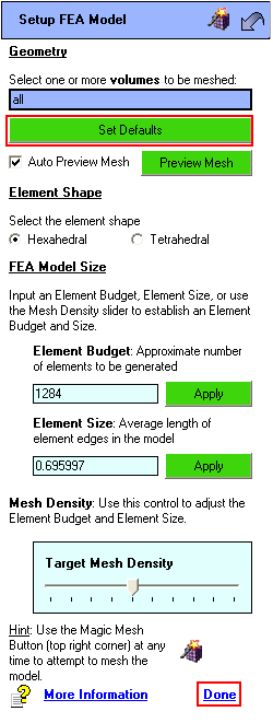 mesh size and populates the fields accordingly-it also previews the
