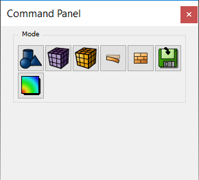 The Command Panels provide a graphical means of accessing almost all of the CUBIT functionality. The main CUBIT Command Panel is divided into seven modes. Each of these modes pertains to a major component of the CUBIT application. To view information about each of the tools in the Control Panel select the help icon on each panel to access context specific help.