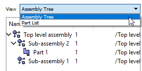 At the top of the tool is a pull down menu. This allows the user to change from the full assembly view to a parts view.