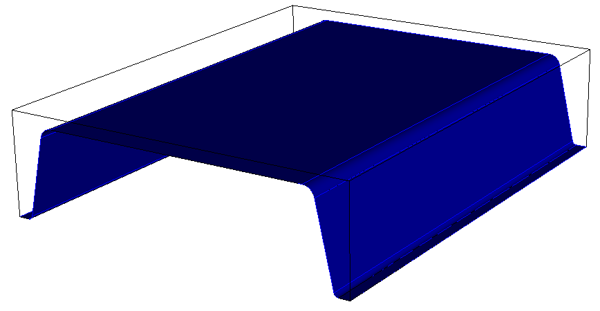 Draws the sheets similar to above, but also displays the sheet as a 3D transparent volume extrusion, where the thickness of the extrusion is defined by the current assigned thickness attribute. The transparent extruded volume will also reflect the current loft attribute for the assigned block. Note that this is similar this is similar to using the command line draw shell volume. This tool is useful for visually validating the currently assigned loft and thickness values.