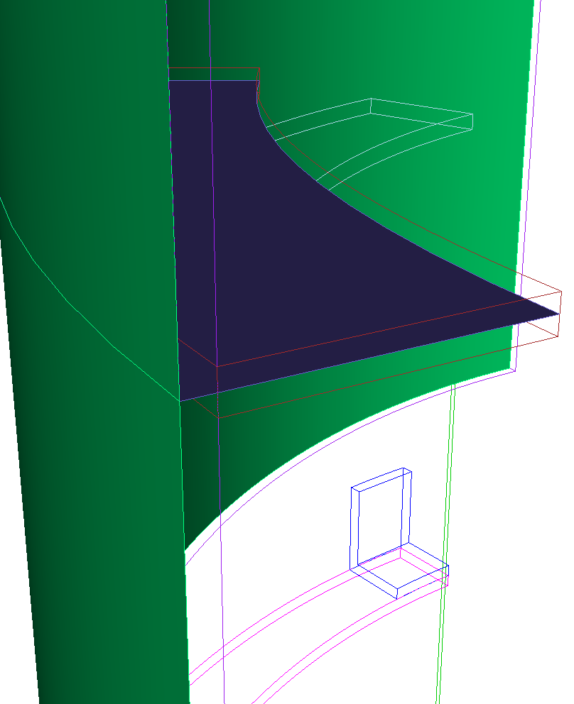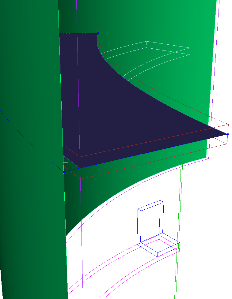 Selecting this tool will highlight or locate all curves from the selected sheets that are merged with a neighbor. This is useful for checking that the intended connections have been made. Note that this option will only select merged curves on sheet bodies that are children of neighboring 3D thin volumes. (It is assumed that sheet bodies on the same parent volume will be merged)