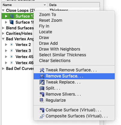 Remove Surface... menu item will bring up