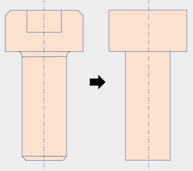 The reduce options provide automatic defeaturing and simplification solutions for specific classes of geometry. These options are most often used as methods for rapidly modifying geometry representing fasteners and springs to representations that can be readily used in analysis. For example, the CAD representation of a bolt may include threads, fillets, chamfers, cavities and may also overlap surrounding geometry. The reduce option can automatically defeature, webcut and modify surrounding geometry as well as mesh and apply boundary conditions according to a designated recipe. A limited number of reduce recipes are currently supported for bolts, including the following: