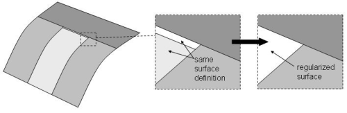 Figure 3. When the small surface’s underlying geometric definition is the same as a neighbor the curve between them can be regularized out.