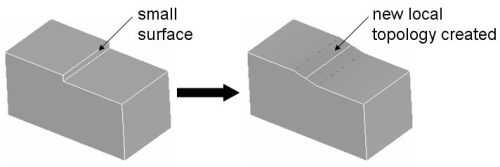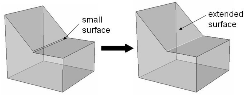 Figure 4. The remove operation extends an adjacent surface to remove a small surface