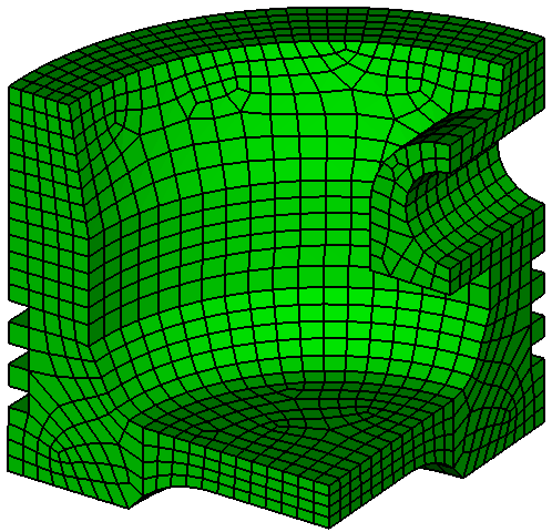 To coarsen a mesh, specify a multiplier less than one. For example, a multiplier of 0.9 will attempt to decrease the element count by 10%. Each block side will have its intervals decreased by the minimum value. A block must have at least one interval, so how far the mesh can be coarsened is limited by the distance between mesh irregularities, geometry, boundary condition and loading constraints.