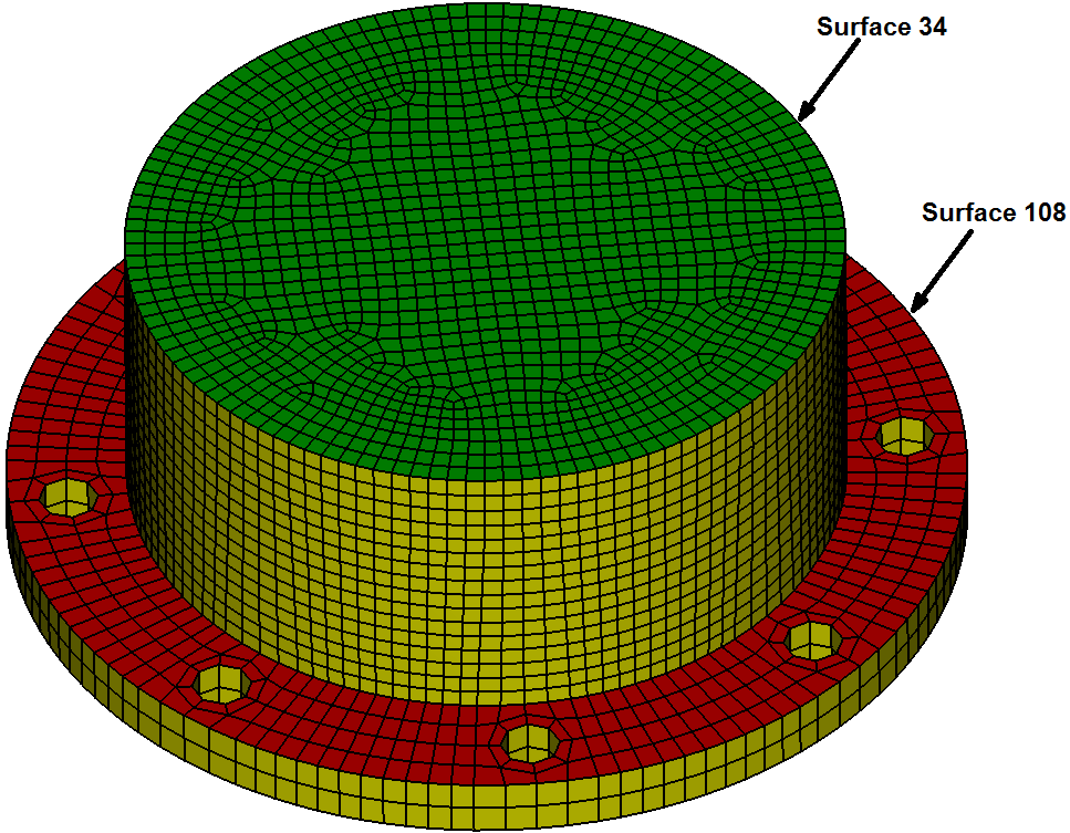 Figure 3. Input mesh. Surface 108's mesh has desired structure and irregular nodes. Surface 34 contains a paved mesh.