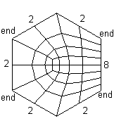 STransition scheme on a hexagon surface with five intervals set to 2, one interval set to 8, and user specified endpoints. |