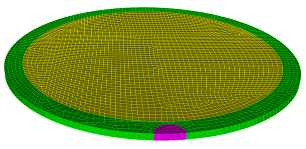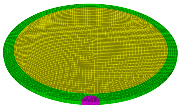 Figure 2 - Highly skewed elements on the linking mapped surface with 'redistribute nodes OFF'