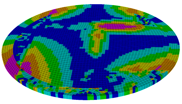 Issuing the command “Volume <id> autosmooth target off”, or using these options in the sweep command, will project the source nodes onto the target without any subsequent smoothing to improve quality. The result is that the relative placement of the nodes on the target will be as close to identical as possible to the relative placement of the node on the sources. This should be used when sweeping models that are very thin, and smoothing of the target could result in significant skew introduced in the thin layers in the sweep. Axisymmetric models might also want to turn OFF the autosmooth target so that the nodes are identically placed on the symmetry plane surfaces.