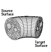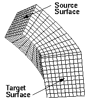 The sweep algorithm can sweep general 2.5D geometries and can also do pure translation or rotations. A 2.5D geometry is characterized by source and target surfaces which are topologically similar. The hexahedral mesh is swept (extruded) between source and target along a single logical axis. Bounding the swept hexahedra between source and target surfaces, are the linking surfaces. Figures 1 and 2 show examples of source, target and linking surfaces.