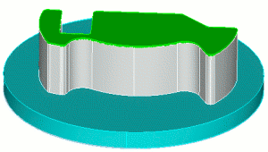 Many-to-one Sweepable Imprinting and merging adjacent volumes creates additional partitions on the source surface, but the target surface does not contain imprints. |