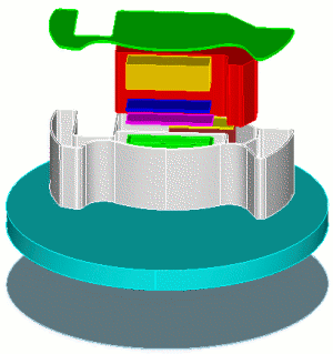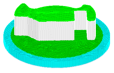 CUBIT> webcut volume 5 with sheet extended from surface 70 CUBIT> imprint all CUBIT> merge all CUBIT> volume all size 0.15 CUBIT> volume all scheme auto |