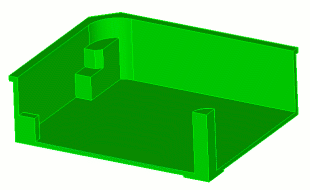 This example introduces additional webcutting options. This example would be a simple many-to-one sweep except for the overhanging lip and the protrusions on the bottom surface. To a beginner user, it may at first seem reasonable to use the bottom surface as a webcutting plane. However, this will not create a many-to-one sweepable volume. Instead, you need to use the protruding surfaces as cutting planes, and extend them through the entire volume.