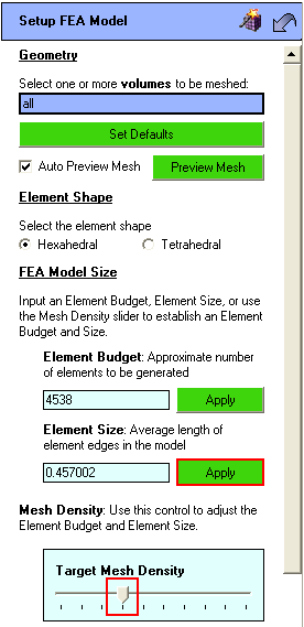 - Change the mesh size by moving the target mesh density slider one