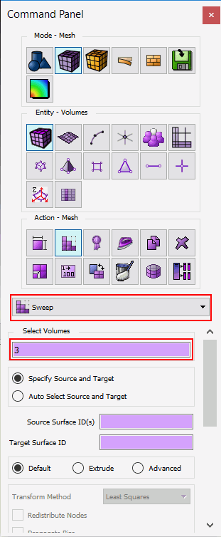 - Go to command panel for Meshing-Volume and select